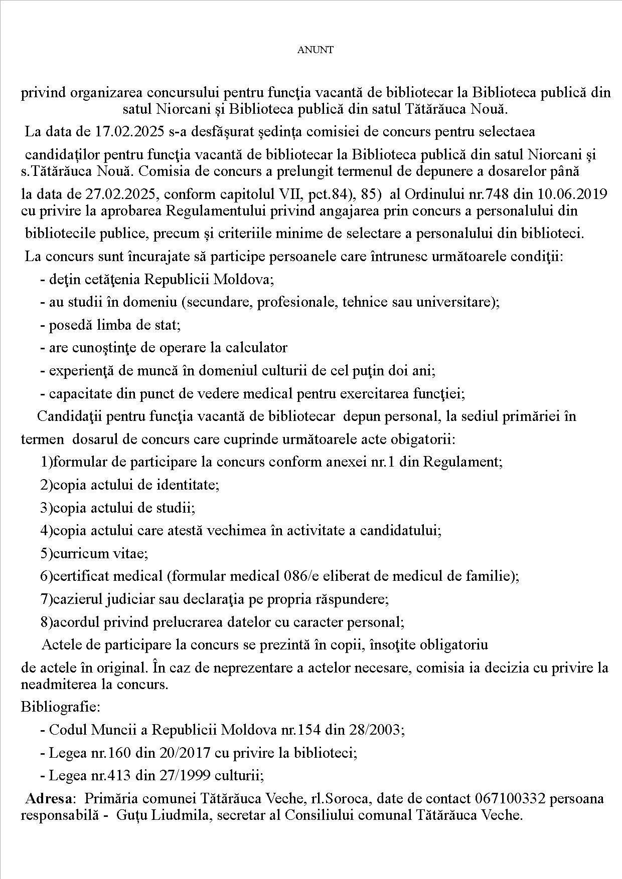 Pe parcursul lunii martie în comuna Tătărăuca Veche s-au desfășurat audieri publice cu tema: „Cu privire […]