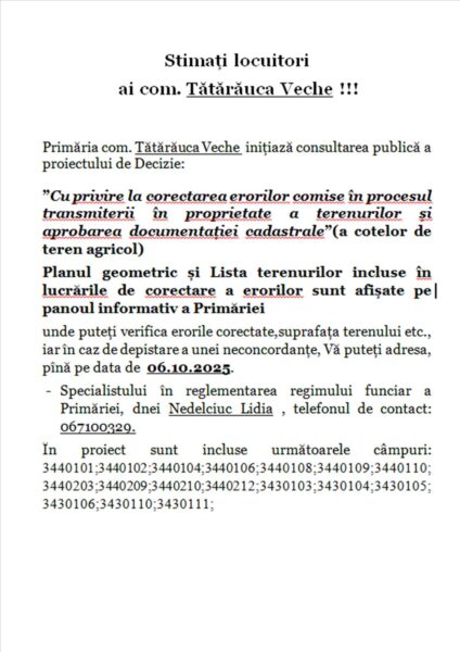 Pe parcursul lunii martie în comuna Tătărăuca Veche s-au desfășurat audieri publice cu tema: „Cu privire […]
